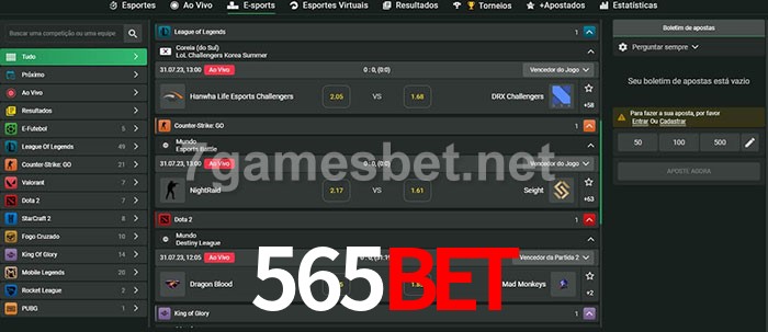 O 565bet oferece uma grande seleção de opções de apostas em e-sports com probabilidades competitivas